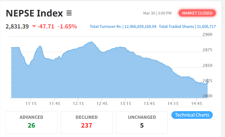 आज नेप्से ४६.७८ अंकले घट्यो