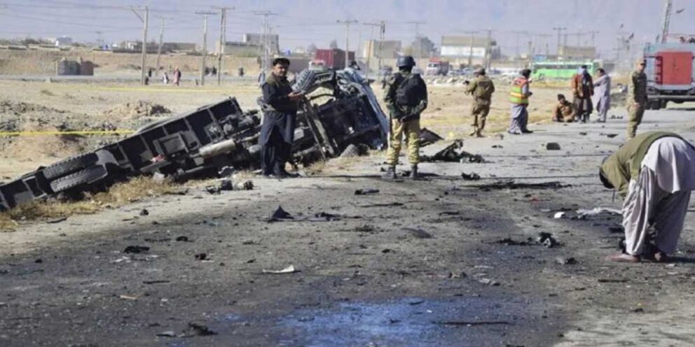 ८ मंसिर- पाकिस्तान, सोमबार बिहान दुई आत्मघाती बम हमलाकारीले सुरक्षा बलको प्रान्तीय मुख्यालयमा आक्रमण गर्दा तीन अधिकारीको मृ’त्यु भएको छ भने पाँच जना घाइते भएका छन् ।