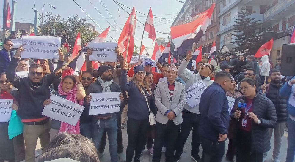 निर्वाचन आयोगले गरेको निर्णयविरुद्ध तरुण दल सडकमा विरोध गर्दे
