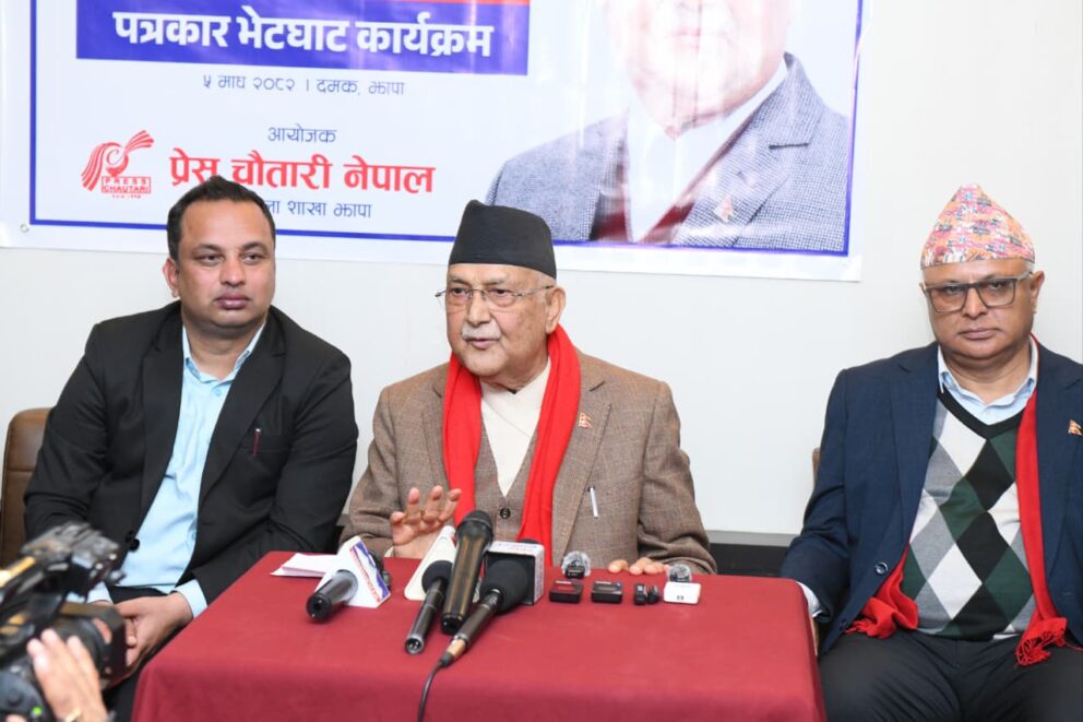 आज झापा पुगेका पूर्वप्रधानमन्त्री ओलीले पत्रकारसँग कुराकानी गर्दै देश जलाउनेहरूबाट देश जोगाउन र देशको विकास गर्न आफू पुनः झापा ५ मा उम्मेदवार भएर आएको बताएका हुन् ।