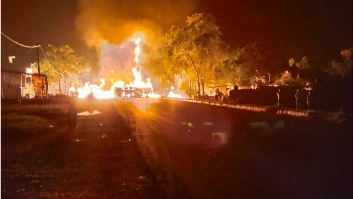 लखनऊ–बहराइच राजमार्गमा ट्याङ्कर दुर्घटना हुँदा आगलागी, चालक फरार