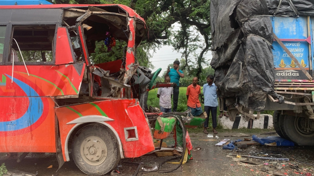 रोकी राखेको ट्रकमा बसले दियो ठक्कर, दुईको मृत्यु, १० जना घाइते