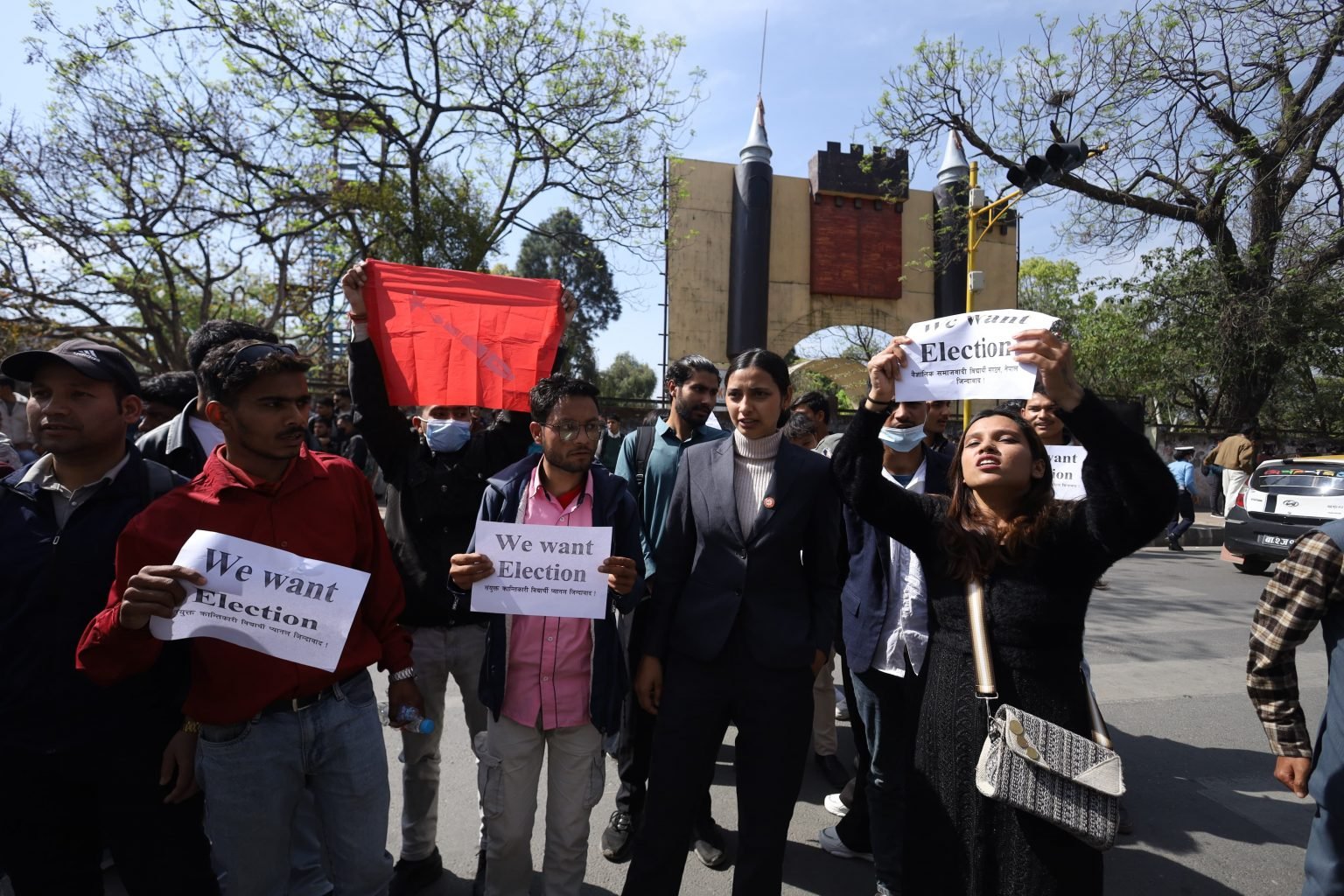 निर्वाचनको माग गर्दै नेविसंघको नाराबाजी