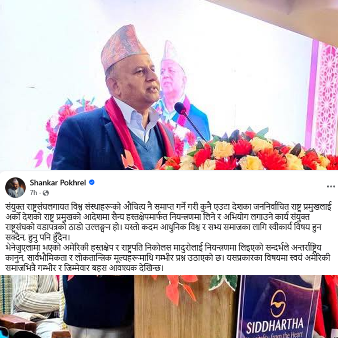 भेनेजुएलाका राष्ट्रपतिलाई नियन्त्रणमा लिनुमा शंकर पोखरेलले पनि गरे ट्रम्पको कदमको बिरोध