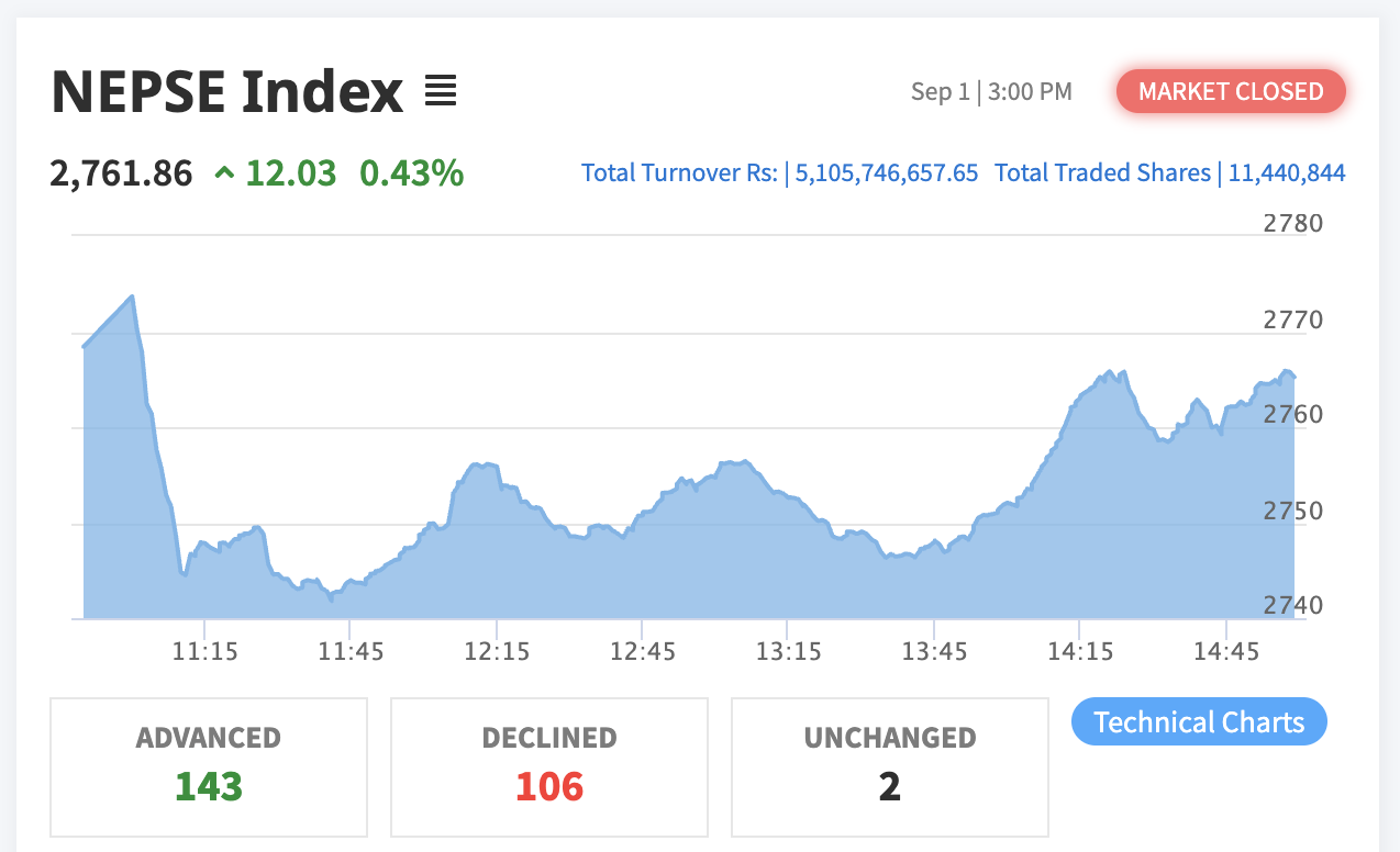 शेयर बजार आज दोहोरो अंकले बढ्यो